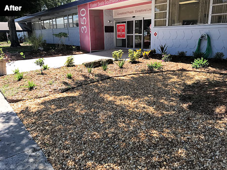 Their center, which is based on Braden Ave in Sarasota, is used by a variety of service users, however they felt specifically "the entrances were looking old and sad". Plantings died and needed to be replaced with Florida native plants. One of the front doors at Easter Seals is an entrance to their pre-school; they wanted the area revitalized so that children enjoyed the beauty of simple Floridian plants.
