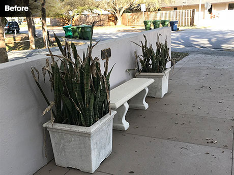 The Center asked Greenscapes to donate our gift in kind to their office on South Tuttle Avenue, Sarasota. They asked us to assess and repair the landscape irrigation system and update the landscaping at the front of building and in the parking and patio areas.